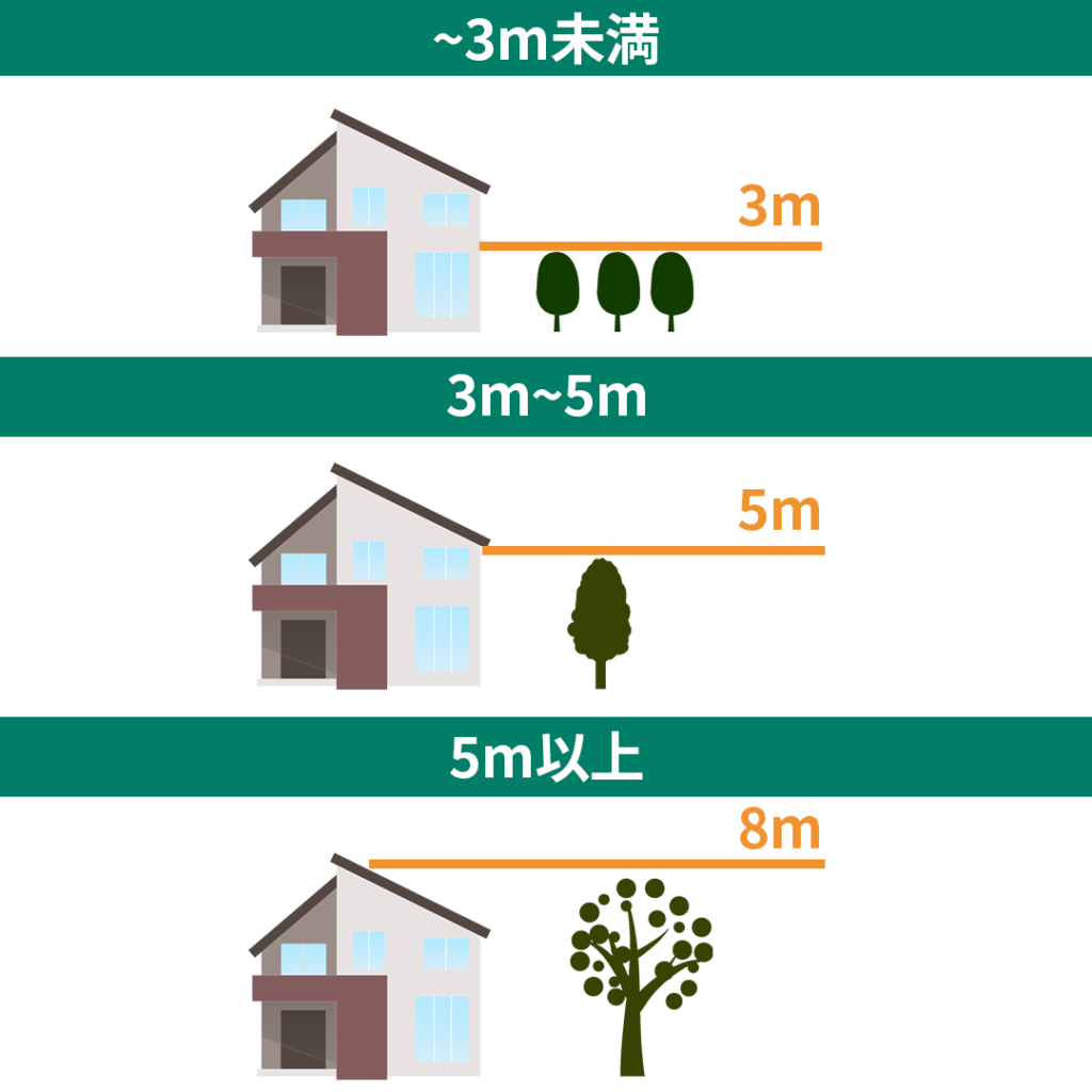 当店が提供している「お家を守る!庭木伐採プラン」はどんな樹種でもどんな大きさでも1本から伐採をする庭木伐採の専門プランです。お家トラブルの原因となる木を伐採することで、事前にトラブルを防ぎます。枝の長さや見た目を整える「剪定(せんてい)」でトラブル対策出来る場合もありますが、「空き家であまり管理できない」「大きくなりすぎている」などの場合は根本から「伐採」するのも一つの解決策です。