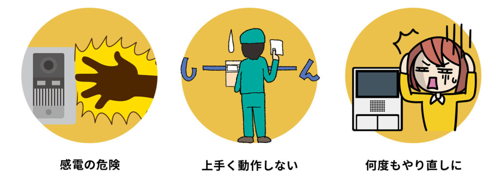 最近は「インターホン交換のやり方」などの動画や記事も多く、「これなら自分でもできそう」と感じる方も増えています。乾電池式などであれば確かにご自身での交換も可能ですが、配線を扱うタイプのインターホンは基本的に電気工事士の資格をもっていないと施工できません。